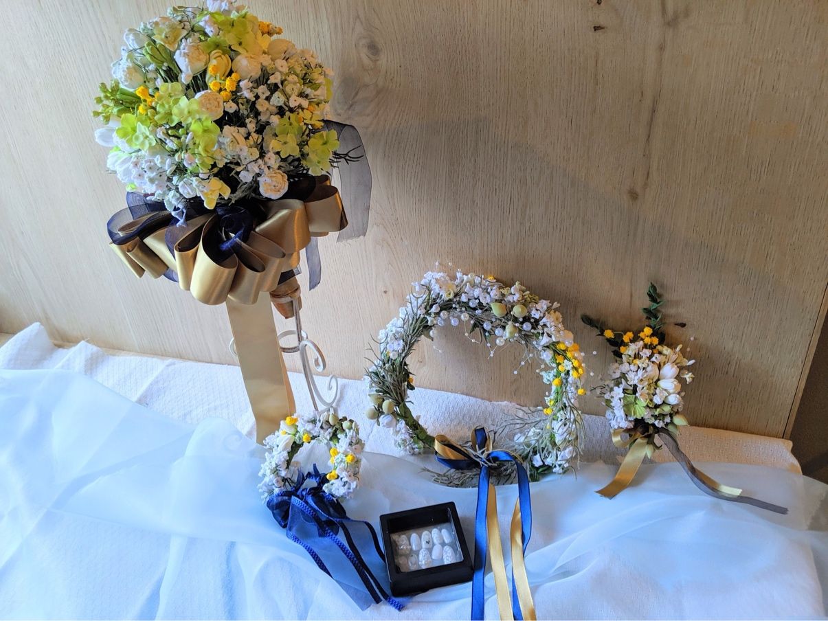 ウェルカムボードからクロスまで、作れるものは自分たちで作成し持参しました。