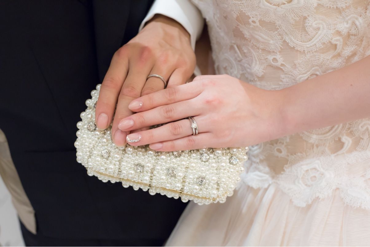挙式のときは首元が寂しいので、祖母の形見の真珠のネックレスをつけました。
