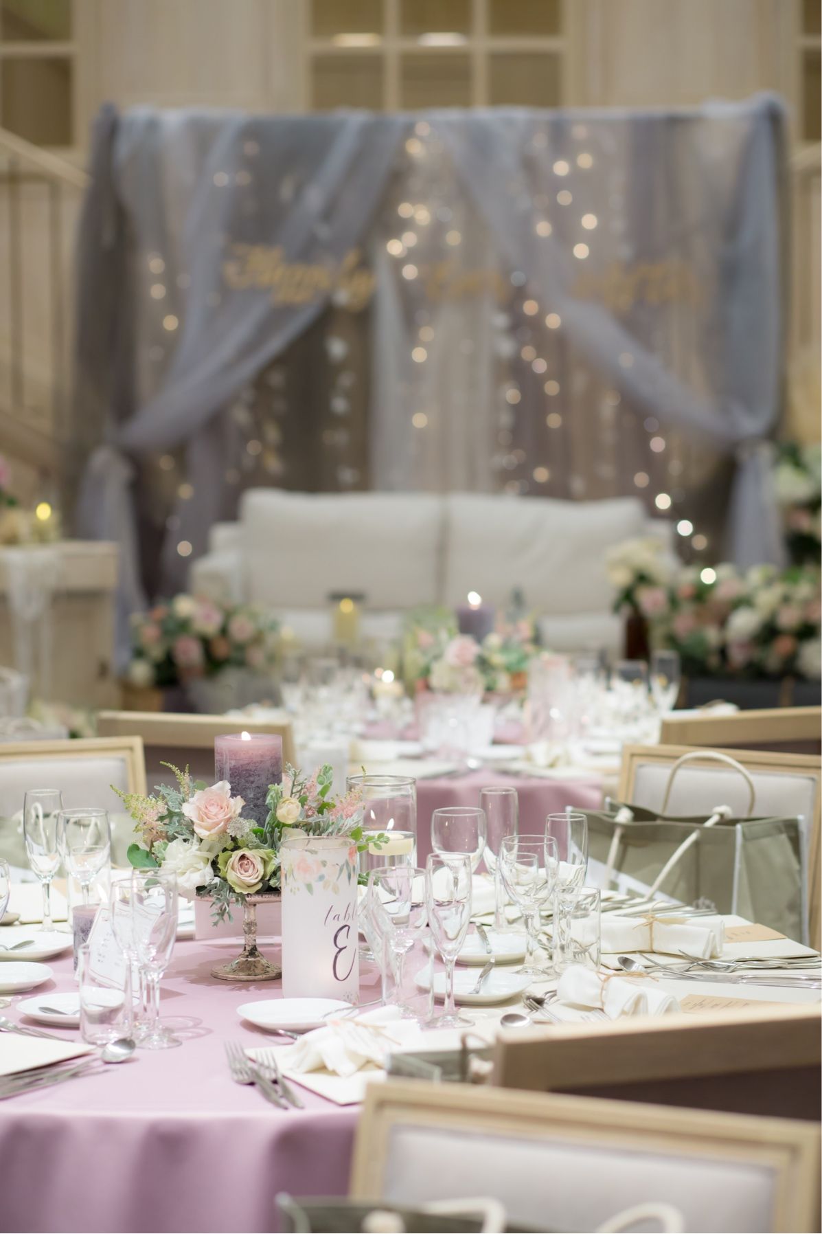 また、ケーキカットはただのケーキカットではなく、魔法をかけて(アラザンをピアノに合わせて振りかける)そのあとにカットする演出をしたり、高砂からお花の配置まで全て細かく決めました!