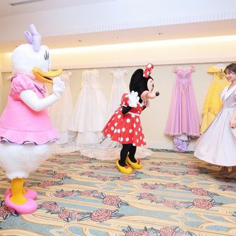 ディズニーが昔から大好きなのでディズニーリゾートで式を挙げたいと思っていました。ディズニーアンバサダーホテル、東京ディズニーシー・ホテルミラコスタ、東京ディズニーランド シンデレラ城全てお話を聞いています。ディズニーアンバサダーホテルのザ・ハピエストデイというプランがあり、プラン内の金額でキャラクター7人がお祝いに駆けつけてきてくれるというところが魅力的に感じこちらの会場を選びました。