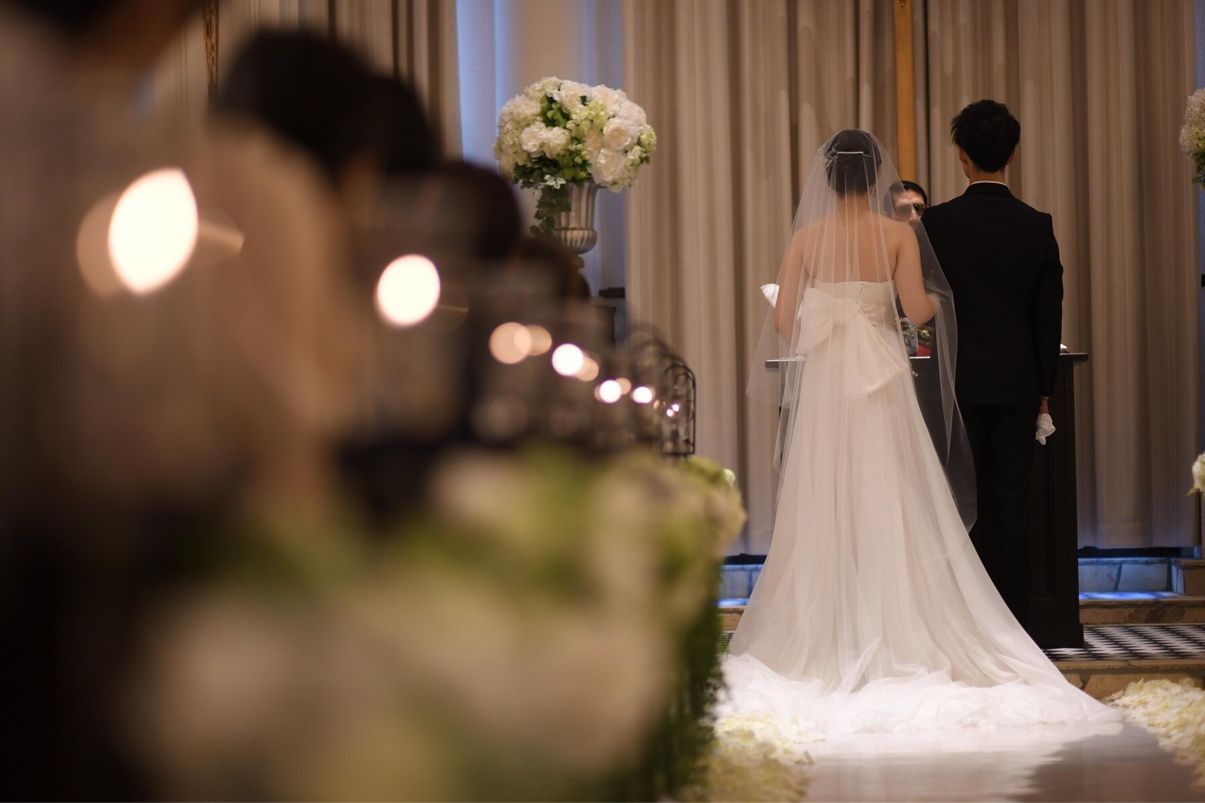 誓いのキスのときにカーテンがオープンして、ガーデンが見え、光が入って素敵です。