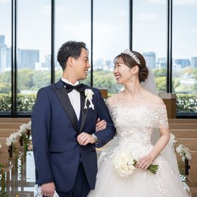 挙式の後半、チャペル後方のカーテンオープンの演出は圧巻です!ただオープンするのではなく、木枠も一緒に動くところが本当に感動しますし、新郎も一目惚れしていました。オープンすると皇居が一望できて景色も良いですし、天井も高く圧迫感を感じないところも良かったです。