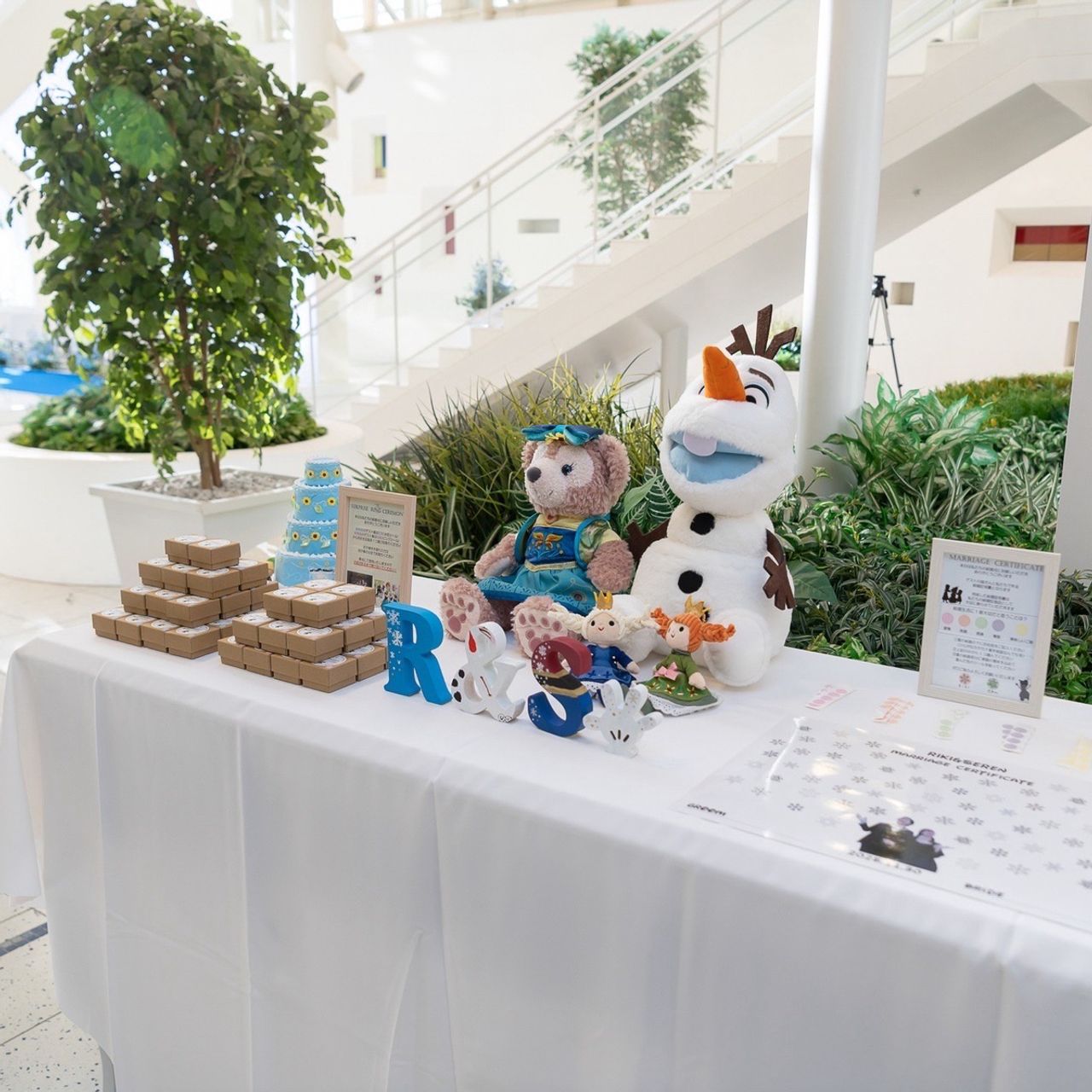 ディズニーが好きなので、装花や装飾等にアナ雪っぽさを詰め込みました!
