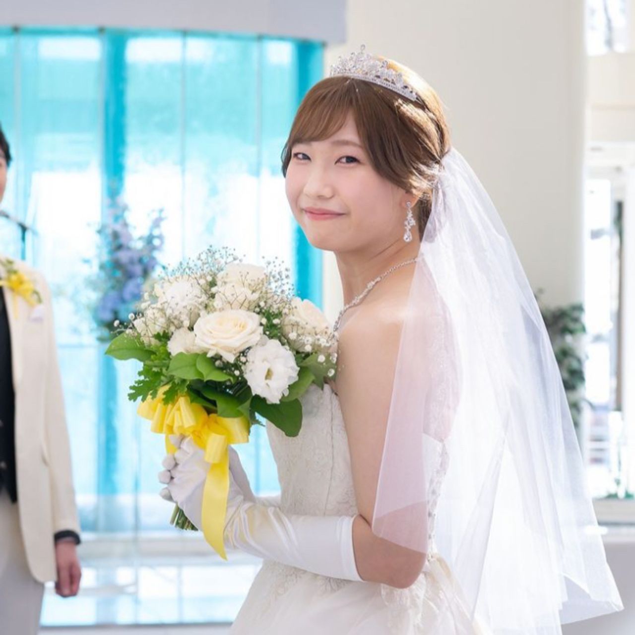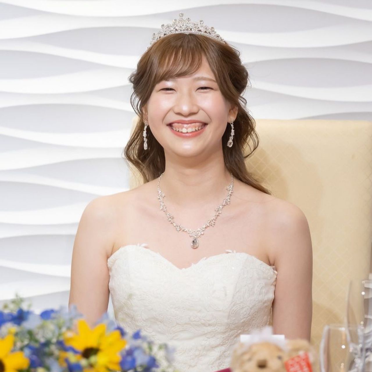 挙式はアップスタイルを希望しており、お色直し後のドレスでも戴冠式のアナをイメージしたアップの髪型にしたかったので、髪をおろすタイミングがありませんでした。