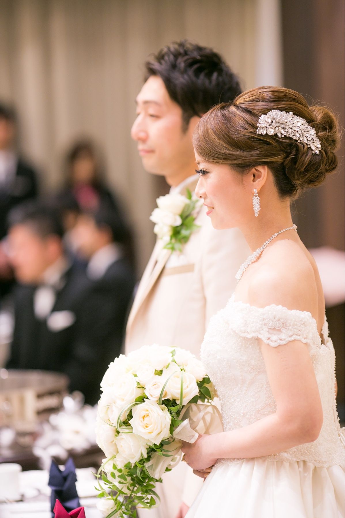 披露宴では上品にキラキラのバレッタをつけました!
