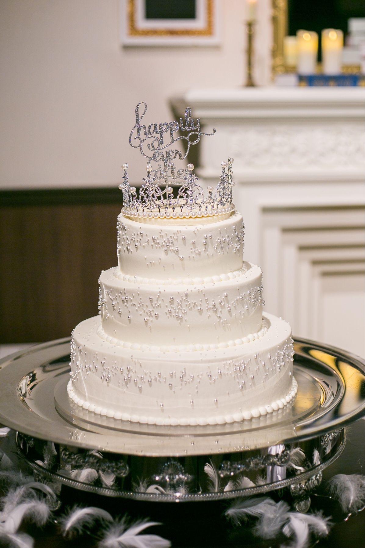 あまりケーキにはこだわりがなく、お金はかからなく、寂しくないけど豪華なケーキにしたいと思いケーキトッパーを派手なものにしました!ケーキの一番上には大きなティアラのケーキトッパーを載せました!結構トッパーの重さがあったので載せれるかわからないと言われたけど頑張って載せて貰いました!また大・中・小のカードを用意して引き、ファーストバイトで使うスプーンの大きさをお互いがカードで選ぶ演出をしました!とっても大盛りでした!