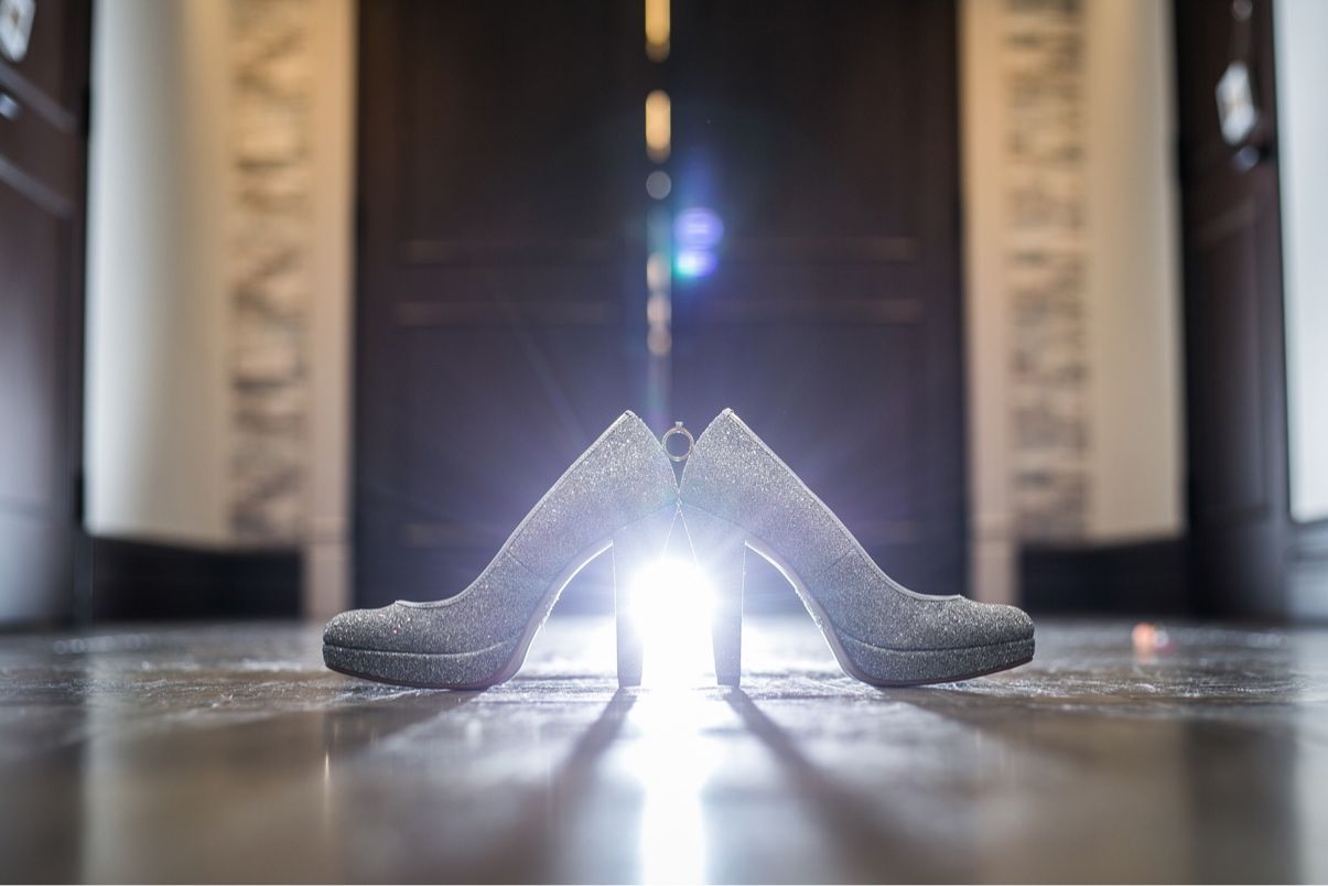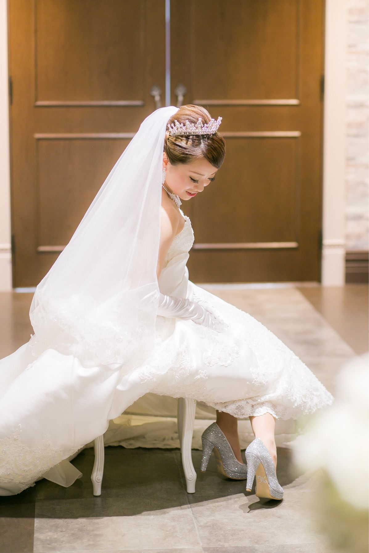 ベニルのグリッターシューズ。身長が低いので12センチヒールです。シューズは意外と写真に写っているので自分が気に入ったシューズを履くと決めていました!