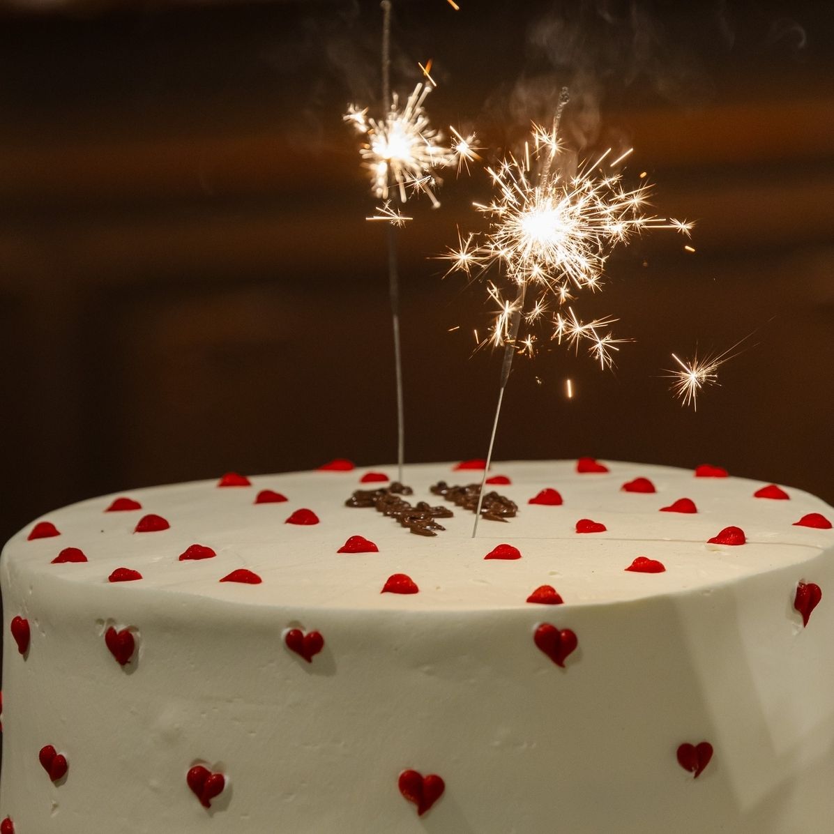 ケーキ入刀ではなくて、花火をケーキに刺して同時に点火しました。