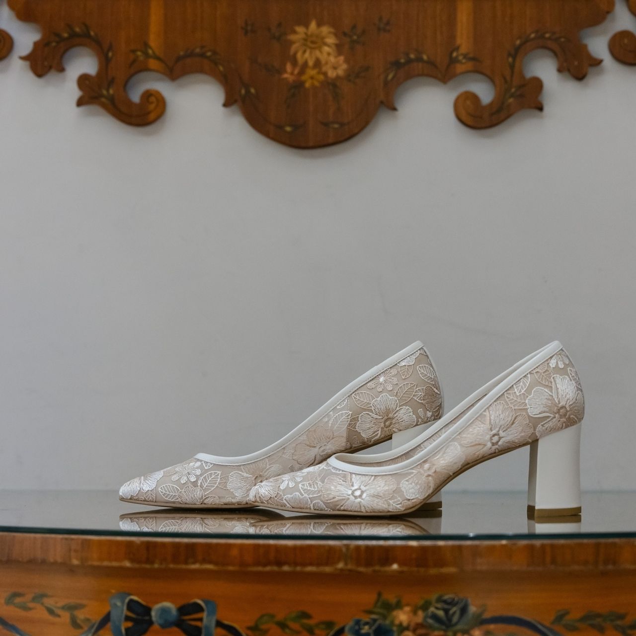 DIANAの花柄レースパンプスにしました。
