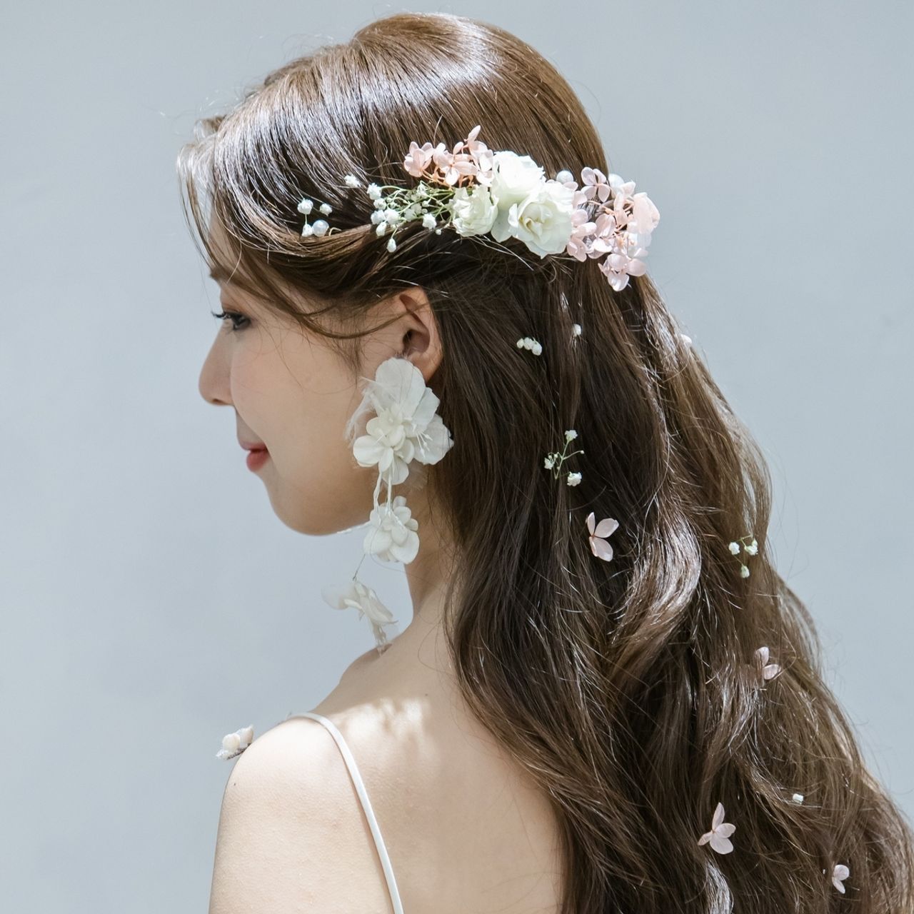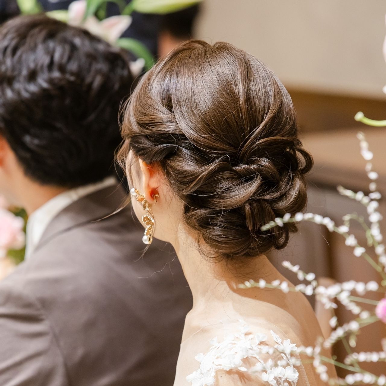 お色直しは生花アレンジのため、お花が主役になるようなハーフアップでお願いしました!