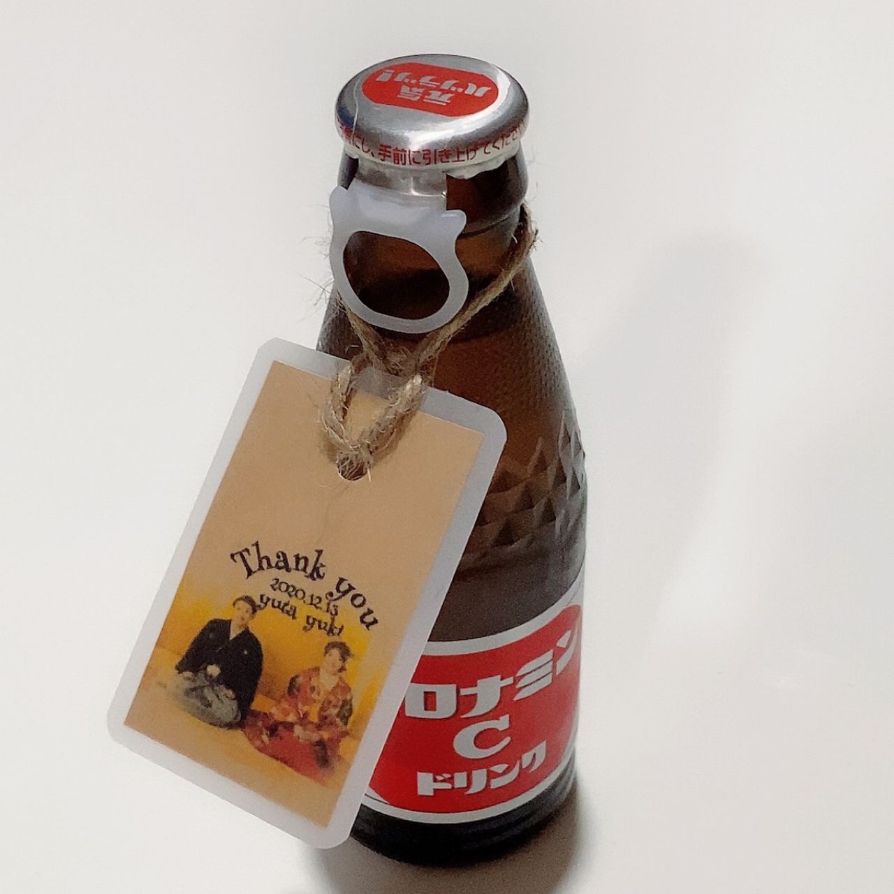 オロナミンCです!オリジナルで作った、サンキュータグをつけて贈りました。