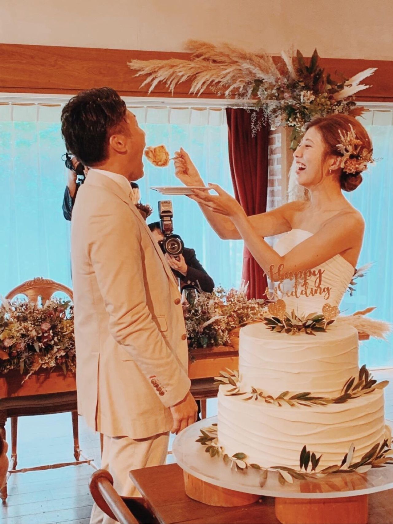 パンパスグラスを大胆に使ってほしくて、高砂と、バックに盛っていただきました。
