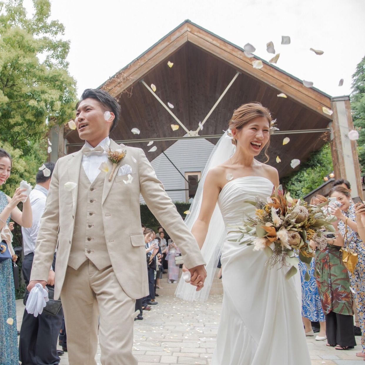 感動的な結婚式だった。ナチュラルで暖かく、私たちの人柄が伝わってきた良い式だった。ガーデンを使ったりしたので、映画のワンシーンのようだった。