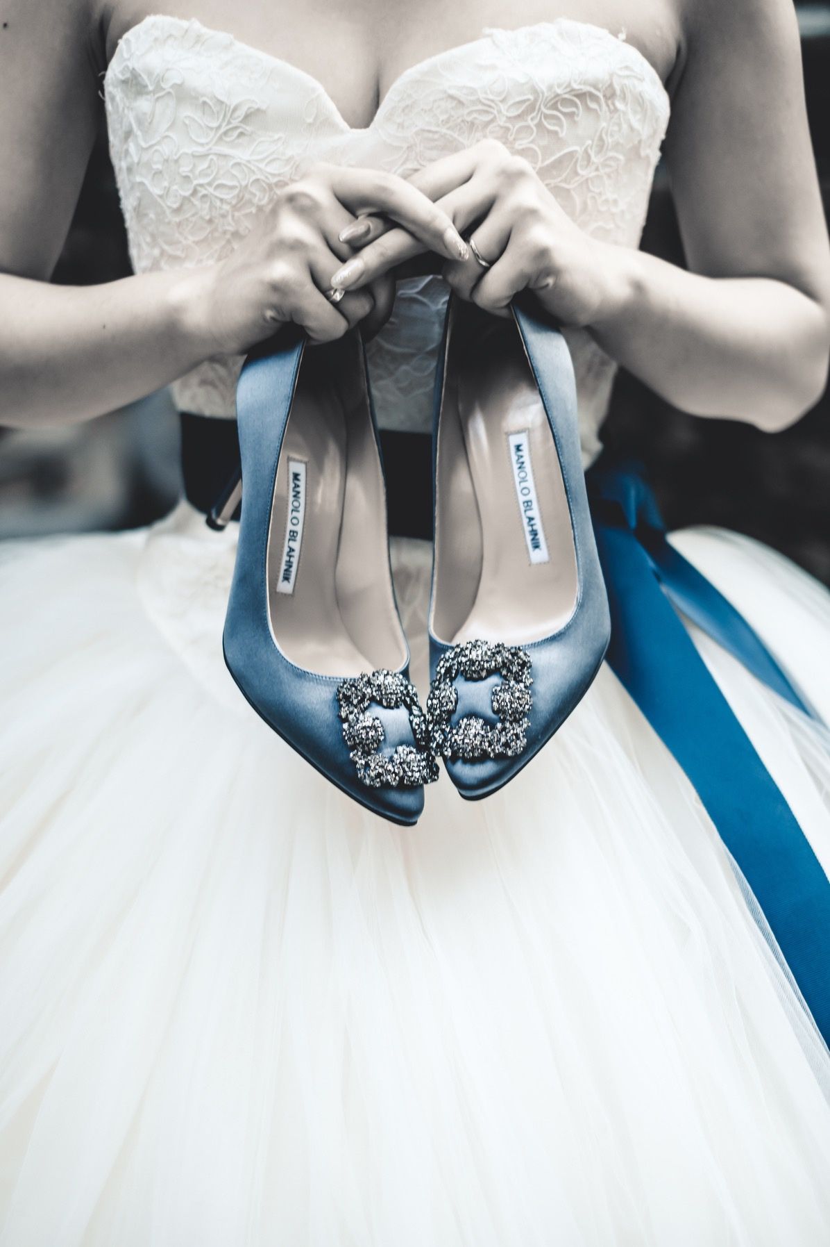 仕事もあるので、あまりキラキラなブライダルネイルというものにはしたくなくて、青みがかったベージュベースのニュアンスネイルにしていただきました!