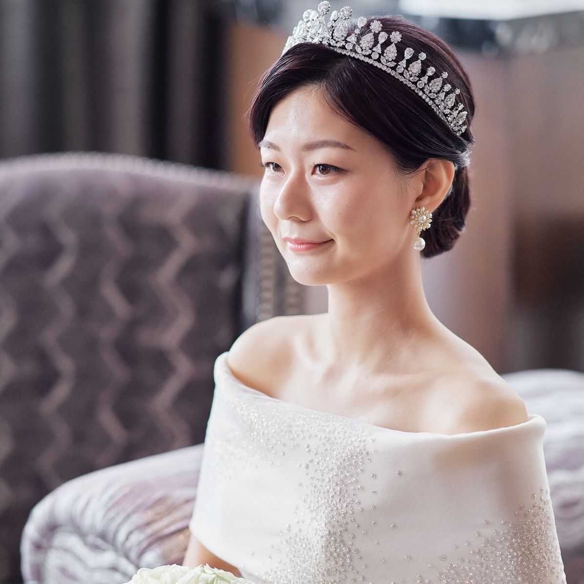 ウェディングドレスにはキラキラとした大きめのティアラを着用しました。