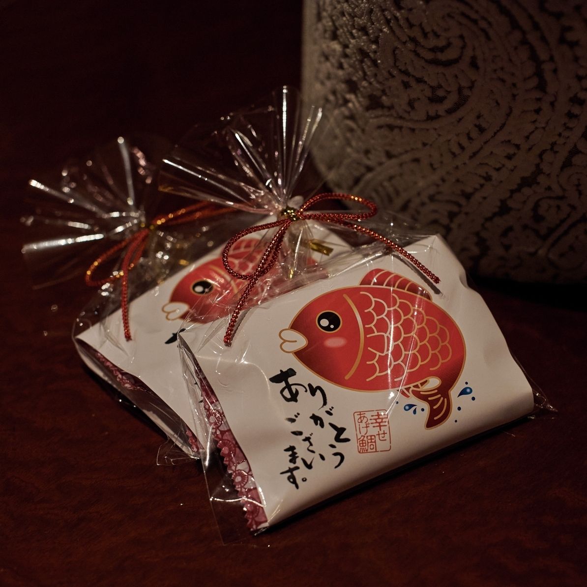 おめでたいということで、鯛の形のおまんじゅうです。夫がこだわっていたのでこちらになりました。