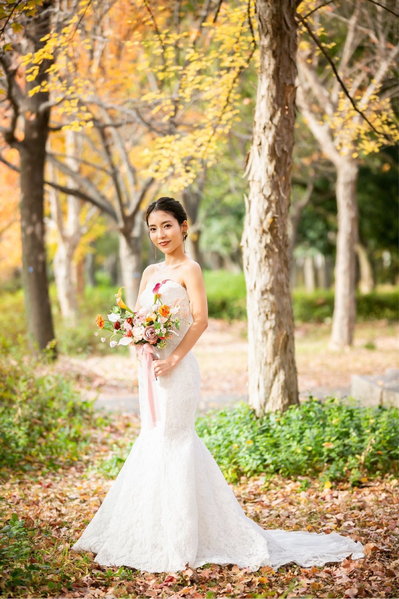 1着目と雰囲気が変わるように、ブランド名は不明ですがマーメイドラインのドレスを選びました。