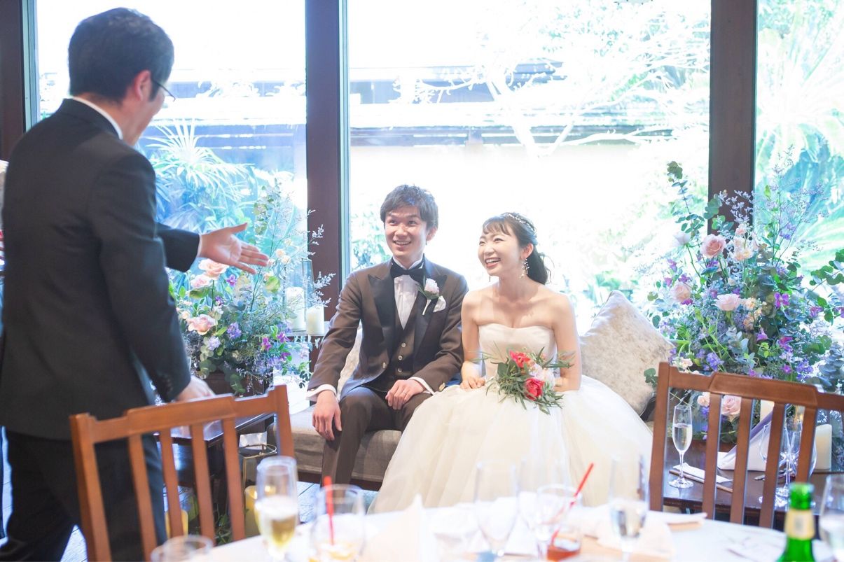会場は挙式・披露宴いずれもガラス張りで自然光がたっぷり差し、ガーデンパーティのような空間だったのでアットホームな雰囲気作りにぴったりで一目惚れでした。