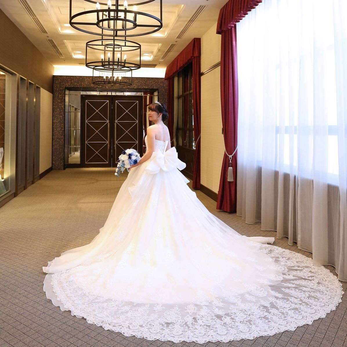 後ろは大きいリボンがついていて、トレーンも大きくキラキラしています。