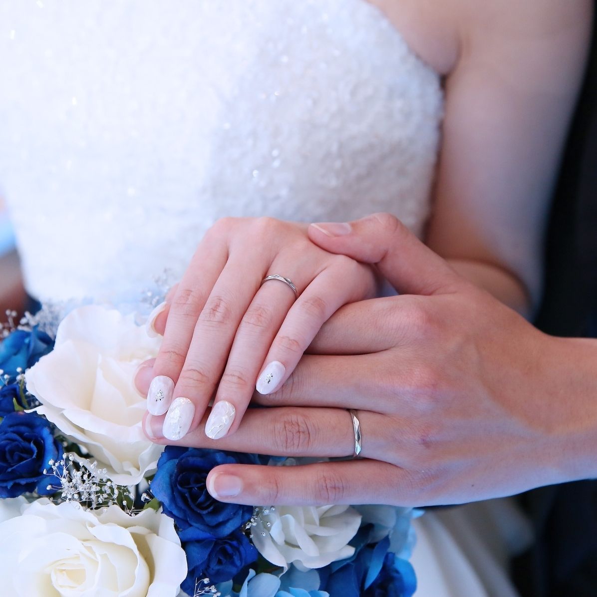 ブーケを映えさせたかったため、ネイルはシンプルなデザインをイメージしていました。白ベースのネイルチップでパールやラメが少し乗っているものにしています。