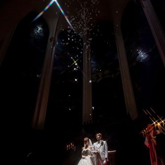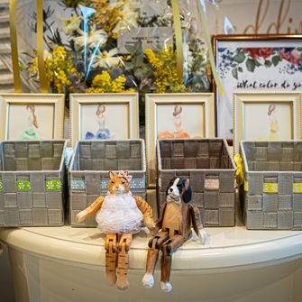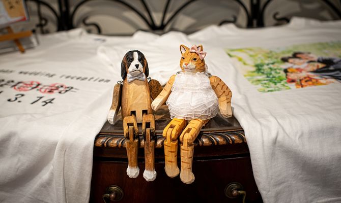「大人かわいい」をテーマに、所々にオリジナリティを加えました。夫婦で鳥が好きなので、装飾や席次表、席札などのアイテムをフェザーモチーフで統一。そして共通の趣味「ラーメン巡り」を、ウェルカムスペースとケーキに取り入れました。