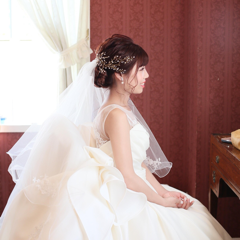 ウェディングドレスではルーズなシニヨンスタイルにしました。