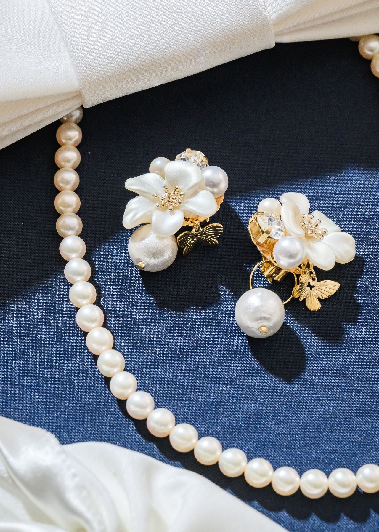 とくにパールのイヤリングは、ネックレスとパールで揃え、写真にもあるように大ぶりのお花と可愛らしい蝶が付いており、とってもお気に入りです☺️✨