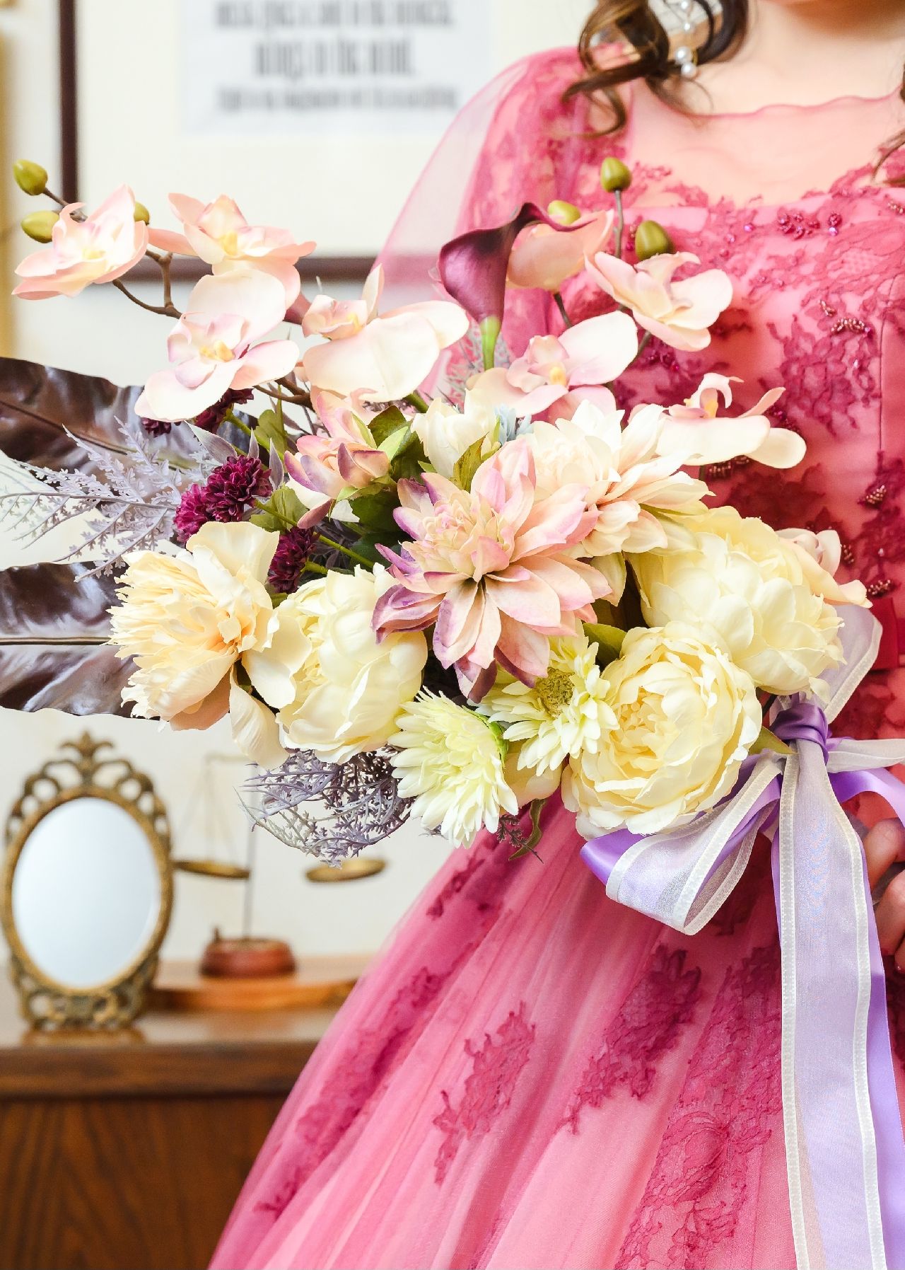 カラードレスのブーケに関しては叔母が得意なので作ってもらいました💐