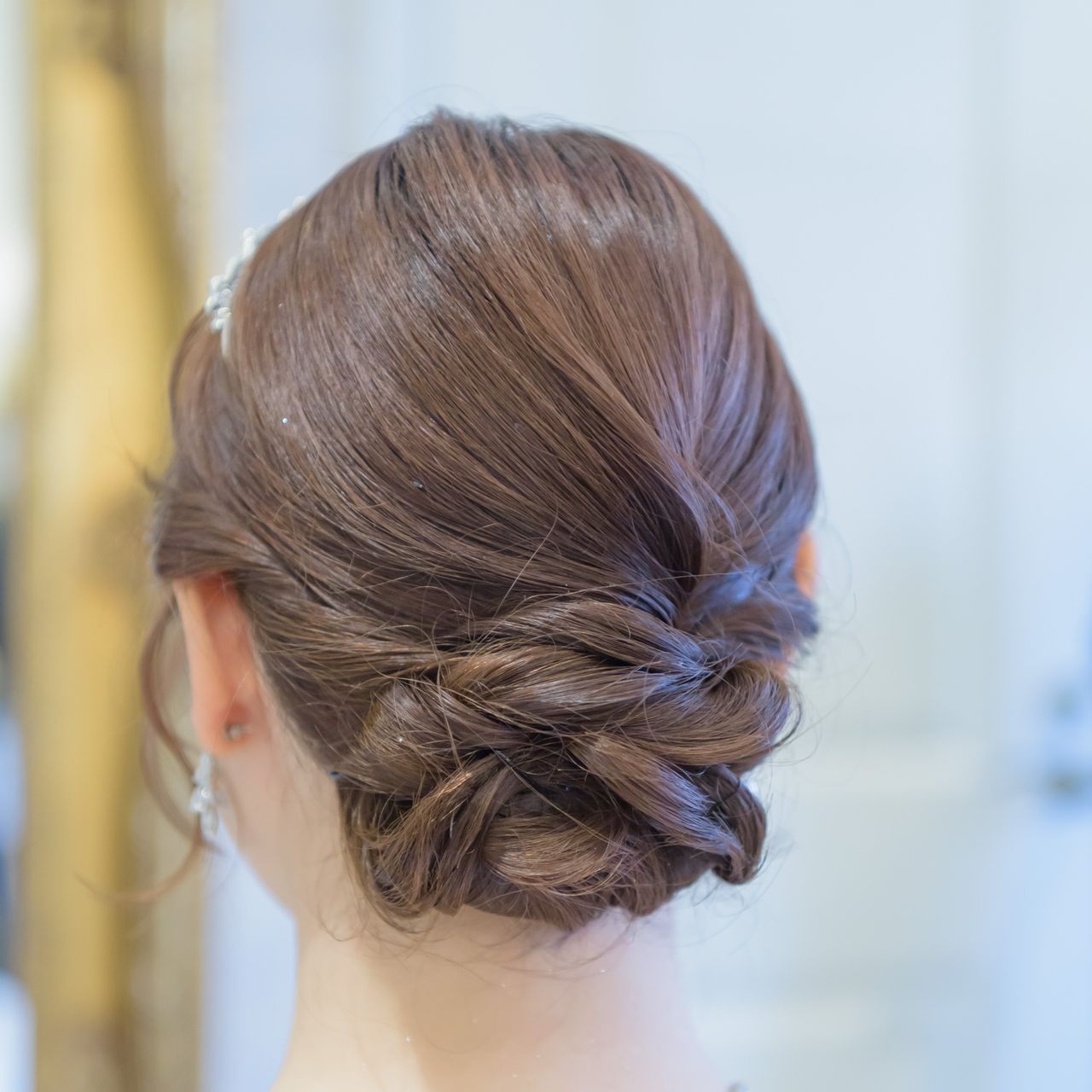 挙式ではシニヨン、披露宴ではローポニー✨️