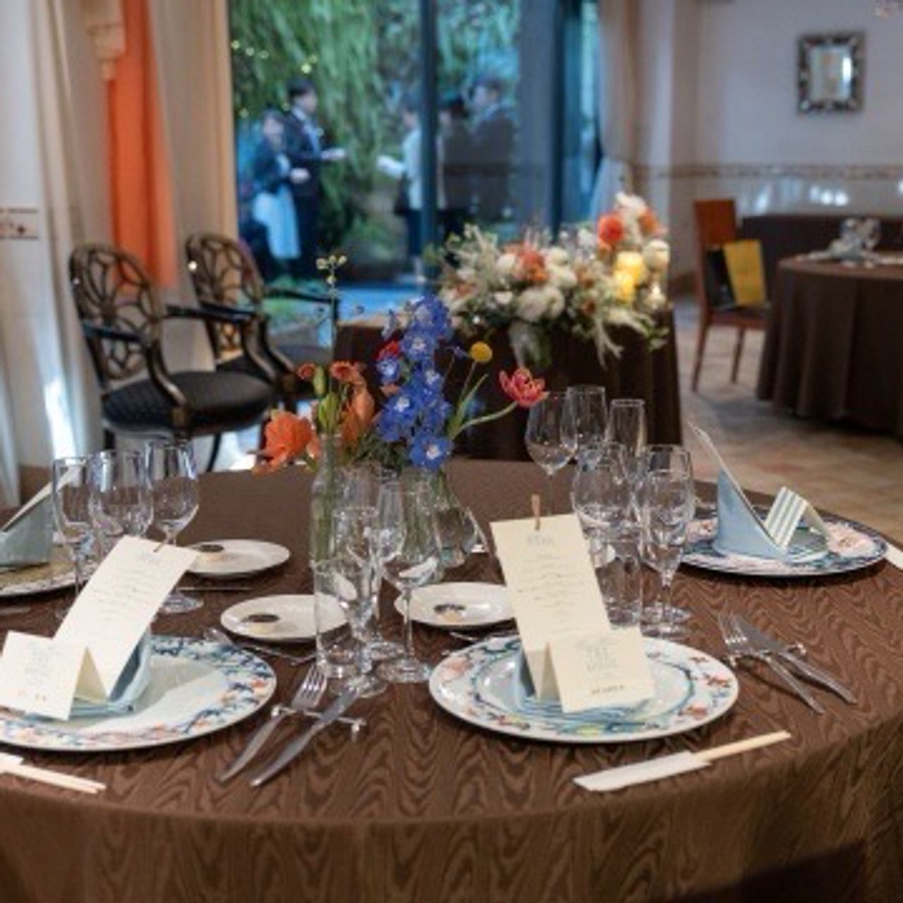窓から見えるグリーンが素敵なバンケットルームです。地下の会場ですが、吹き抜けとなっており明るさは十分でした。プライベート感もあり、落ち着ける空間です。写真撮影の際、グリーンが良く映えました。