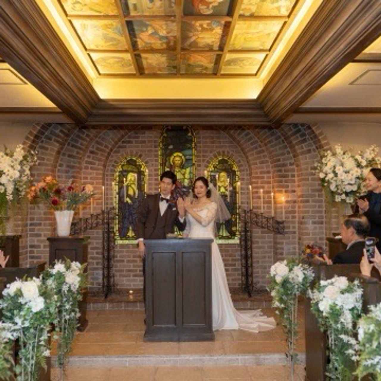 落ち着いた色味や、アンティークのステンドグラスが素敵なチャペルでした。広すぎず、アットホームな雰囲気も良かったです。