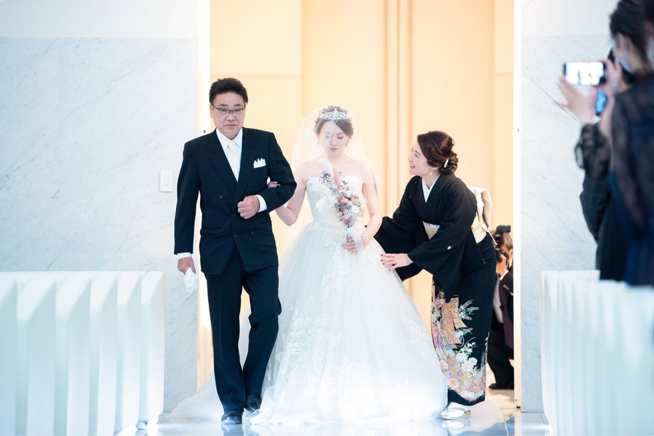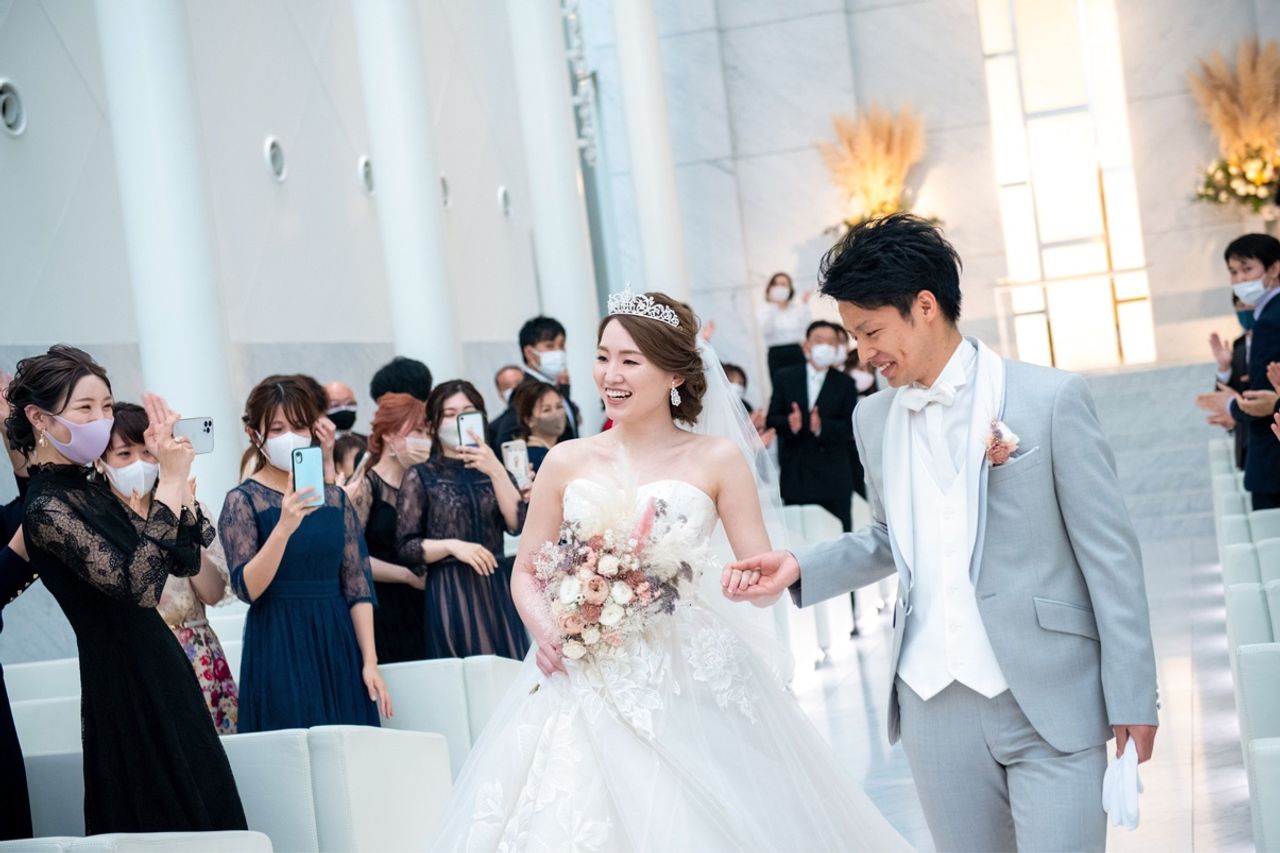 ベールダウンと父と歩くバージンロードは、感慨深いものがありました。ゲストからの拍手も響き渡り、圧倒されたのは忘れません。