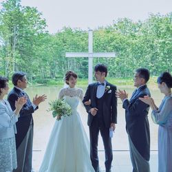 生花香る独立型チャペルで専任牧師が贈る、心繋がる特別な誓いが叶う。少人数の為に造られたキッチン併設パーティ会場を贅沢貸切、幅広い世代に愛されるレストラン美食「和×フレンチ」の極上フルコースを堪能して