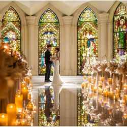 イギリスに実在した本物のステンドグラスを背景にカップル撮影!その場でフォトお渡し当館支持率No. 1フェア◎運営レストラン5年連続ミシュラン獲得◆和牛&オマール4万試食!結婚式に必要な情報を全部体験!