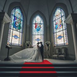 【ドレス2着分の40万円分を含む!最大120万特典】150年の歴史を刻んだステンドグラスなど、青を基調にしたクラシカルなチャペルで叶える感動挙式。ゲストと絆を繋ぐ温かみあるセレモニーを体験。無料試食付き