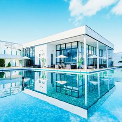 土曜SP\ギフト最大3万&150万優待/地元でたくさんのゲストと楽しめるプール付きリゾート邸宅。海外リゾートを感じさせる開放的な空間を全館まるごと貸切に。〈期間限定〉和牛や地元食材を使ったコース試食付き※前日以降のご予約については、試食はデザートのみご用意
