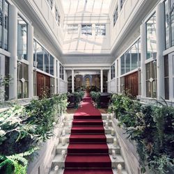 《ドレス50%特典》で運命の一着をお手伝い。フェアではドレスショップ見学で当日の衣装イメージも◎旧露亜銀行時代より守り継ぐ大理石大階段*深紅のバージンロードも必見。試食もあるのでお気軽にご参加ください。
