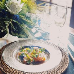 明るく自然光がふんだんに入るお昼間と宝石のように夜景が輝き時間の移り変わりと共に異なる顔をみせるレストランを貸切る贅沢ウエディング。天才双子のシェフ・プルセル兄弟の南仏料理が日本で味わえるのはここだけ。五感をフルに使って楽しむ特別な一日を体感してみて!