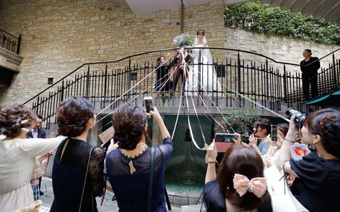 併設の階段から新郎新婦が入場すれば、まるで映画のようなフォトジェニックなシーンが叶います。