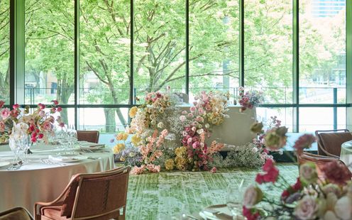 パーティ会場の雰囲気を活かしたふたりらしさ溢れるトータルコーディネートを実現!エントランスから会場、プライベートガーデンまでふたり次第でどんな演出も叶えられます。エントランスにふたりのフォトギャラリーや、持ち込んだ好きなアイテムで飾り付けもOK!大切なゲストへおもてなしの心が伝わる空間をトレンドを取り入れたフローリストが一緒に創り上げます。館内に、フラワーアトリエもあるので気軽にご相談ください。