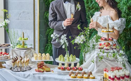 料理はシェフとスタッフで何度も打合せを重ねて、納得のいくものだけを提供。オープンキッチンから届く出来立ての美食は幅広い世代に喜ばれています。式の48時間前から仕込みを行い、一番美味しい4℃で管理されるビールや、オリジナル調味料など、こだわりは細部にまでわたります。また、ナイフやフォークなどのカトラリーは、日本におけるカトラリーのトップブランド『LUCKYWOOD』を採用。さらに、大切なゲストへのおもてなしを叶えるため、ふたりにゆかりのあるオリジナルメニューにも対応しますのでまずは何でもご相談ください。