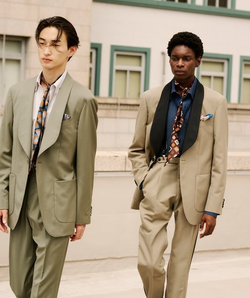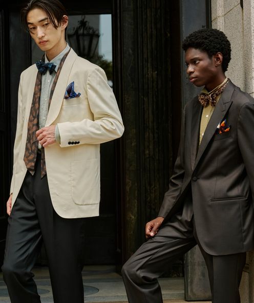 メンズのコーディネートも楽しい衣裳合わせの時間です。ドレスを際立たせる豊富なラインナップからお好みの1着を一緒にお探しさせてください。