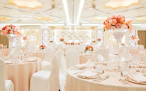 英国のイングリッシュコテージをデザインコンセプトとしたゆったりと落ち着いて料理を味わうことのできる、おもてなしにふさわしいバンケットです。ローズウッドを用いた優しく温かみのある色合いが、リラックスできる雰囲気を作りだし、ふたりとゲストに至福の時間を与えます。