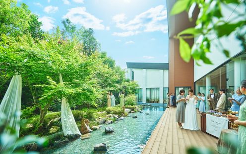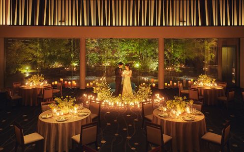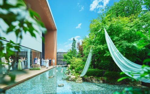 季節を感じる日本庭園、開放的な吹き抜けのラウンジ、多彩な演出が叶うパーティ会場などゲストをもてなす充実設備をすべて貸切に。