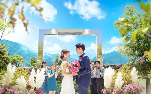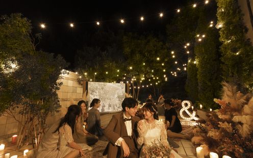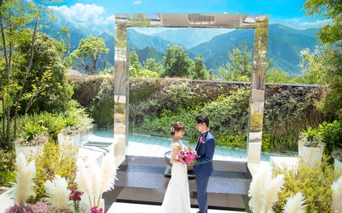 目の前に広がる空と山との境界線、優しいそよ風、太陽の光に包まれたセンターガーデン。オープンエアな空間での挙式、フラワーシャワーやバルーンリリース、ドリンクビュッフェでガーデンパーティーなどお二人のご結婚式をより印象的にすることができます。ナイトタイムには吹上花火やキャンドルを灯したロマンチック空間の中で映像演出も叶います。
