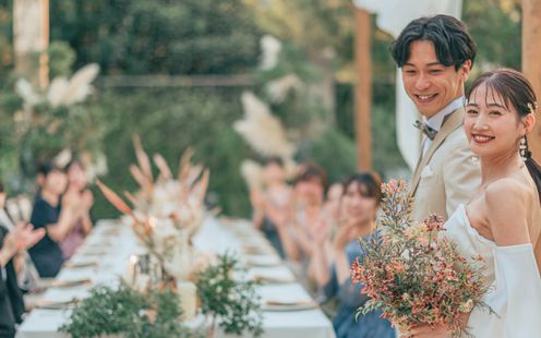 開放的な空間でゲストからの祝福の言葉が飛び交う挙式
