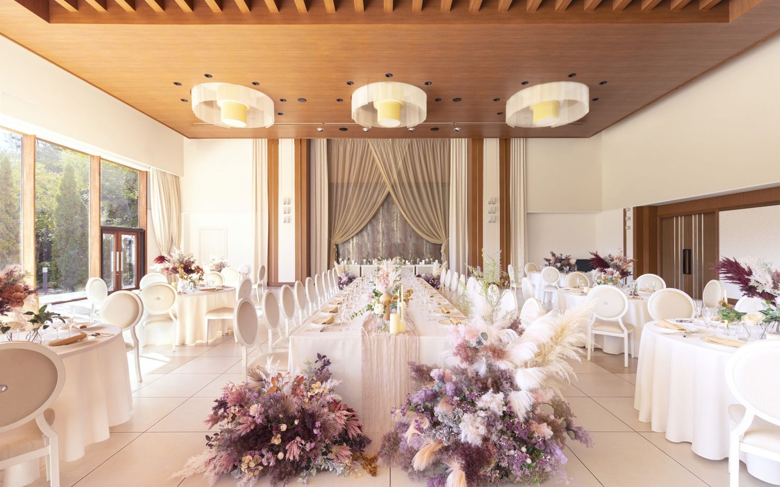 美しいドレープや随所に煌めくクリスタルが パーティーを華やかに演出