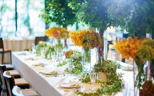 決まったコーディネートではなく、一組一組オーダーメイドでご提案するフラワーコーディネート。ナチュラルにもエレガントにも、スタイリッシュにも。誰ともかぶらないおふたりだけの会場コーデイネートでゲストをお迎えしましょう。