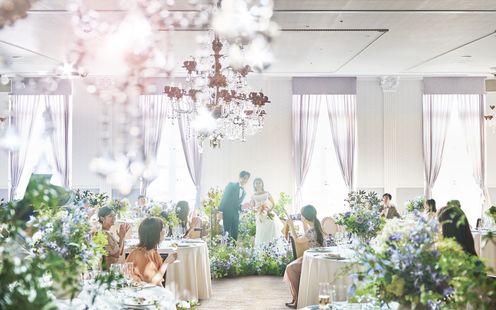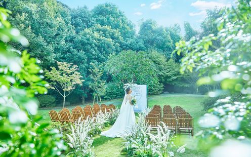 青々としたグリーンが眩しいプライベートガーデンもすべて貸切!ゲストの温かなまなざしに包まれるガーデンセレモニーや、フォトブースをセッティングしてのフォトタイム、季節のフルーツや焼き菓子が色とりどりに並ぶデザートビュッフェなどふたりらしいアイデアで自由度高い演出をお楽しみいただけます。