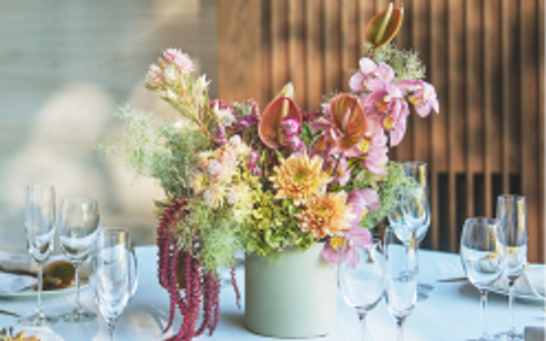 ふたりのウェディングのコンセプトにあわせてフローリストが洗練されたスタイリングを提案